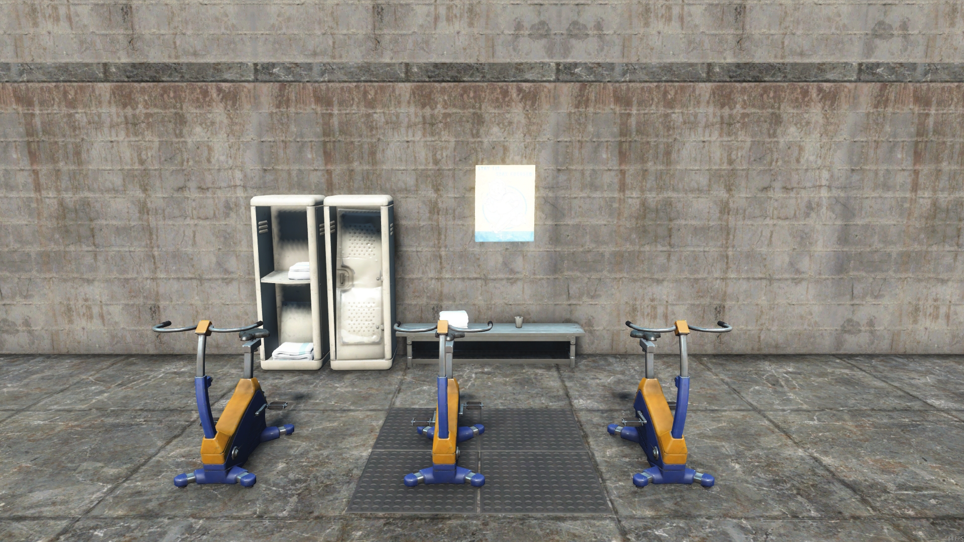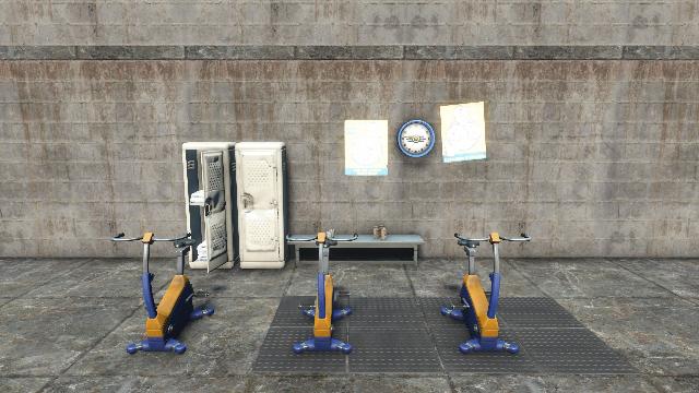 A small powerbike gym to give your settlers a workout.