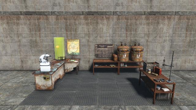 Manufacturing of various pharmaceuticals to put a pep in your settlers step (Produces Buffout, Mentats, etc. for clinics)