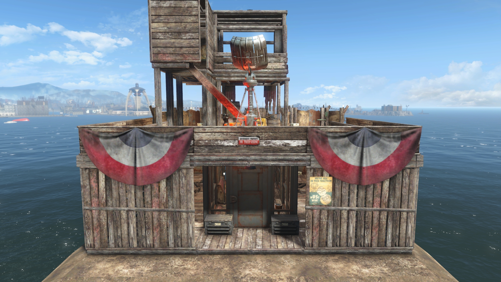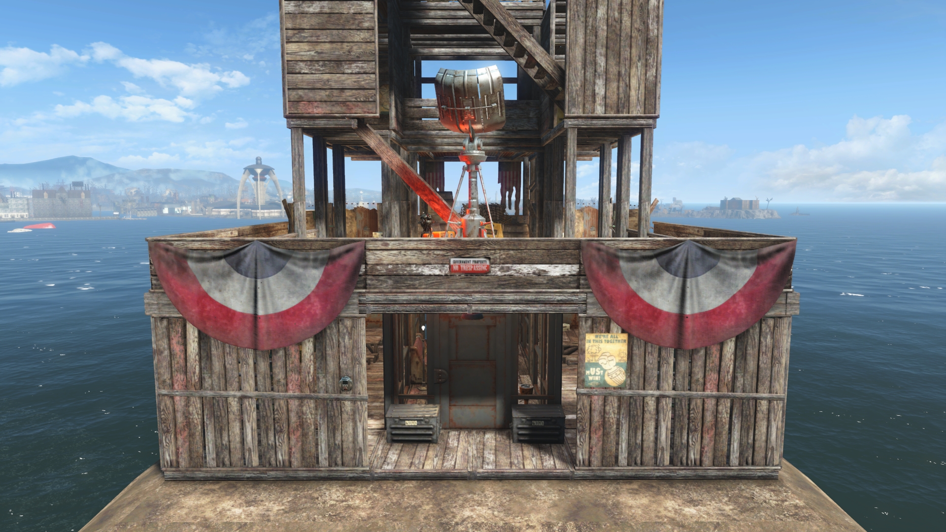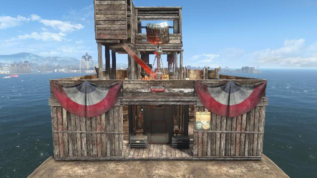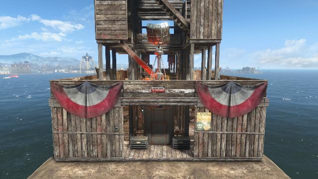 "The Gateway Tower" is a strategic defensive structure, evolving from a simple entry point to a three-level lookout. It provides a fortified gateway on the ground, with upper floors offering expansive views for early threat detection. This tower symbolizes settler resilience and tactical foresight in a dangerous world.
