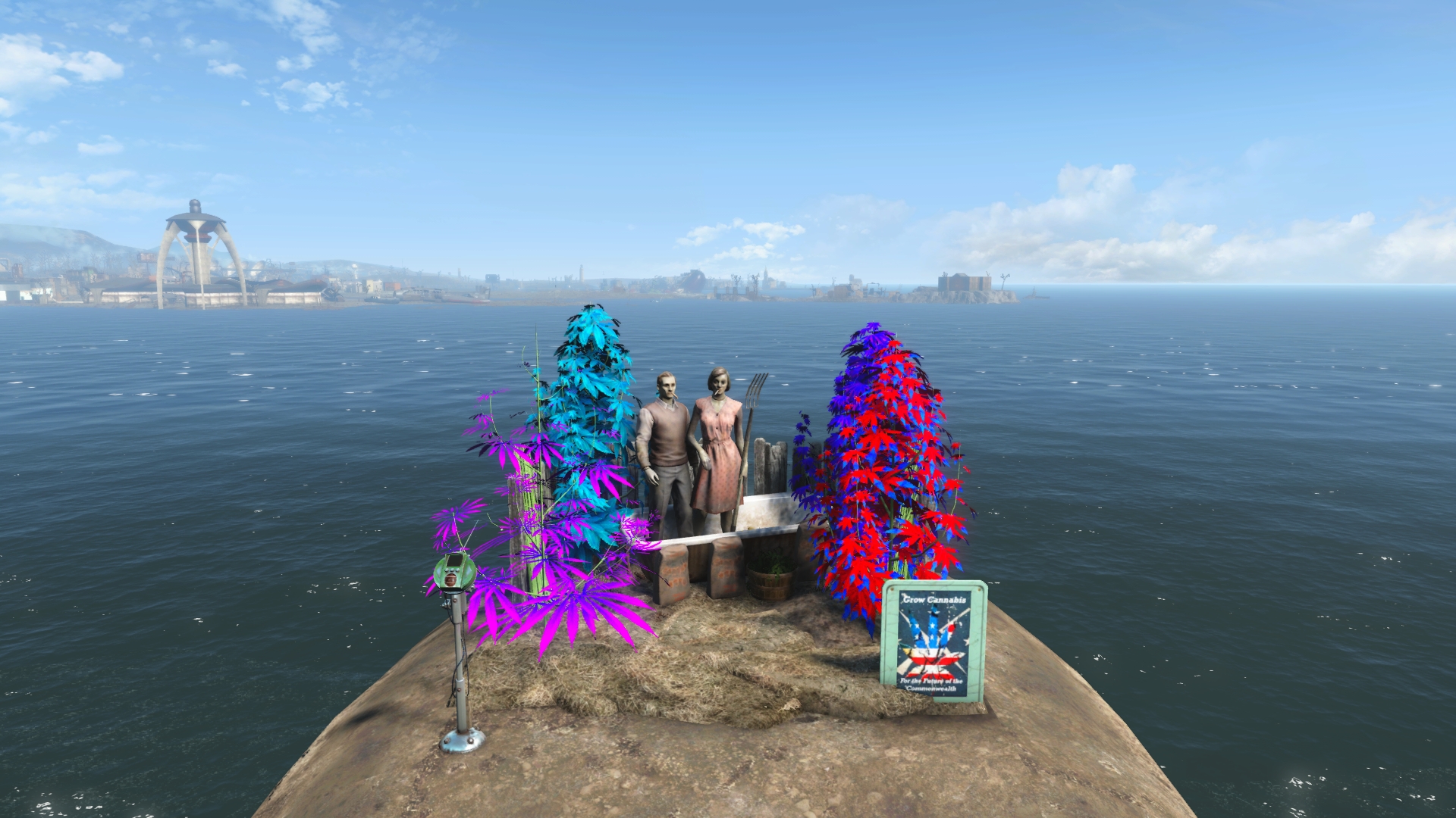 This addon pack includes a custom Minutemen flag that overrides the vanilla Minuteman flag texture. It has been ommited from this site's screenshots to prevent it from appearing in screenshots from other addon packs.