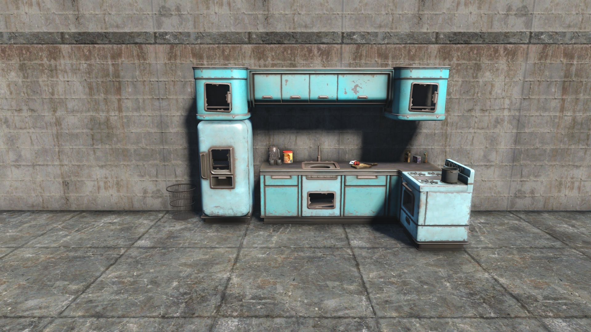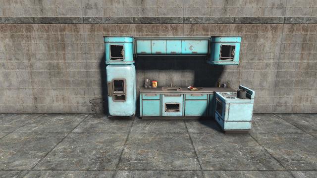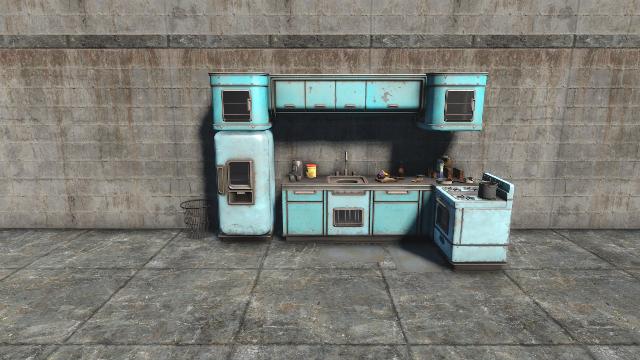 A small Sanctuary kitchen with multiple skins. Fits in the Workshop house kitchen and will fit other houses as well. Open on Left Side and Front.