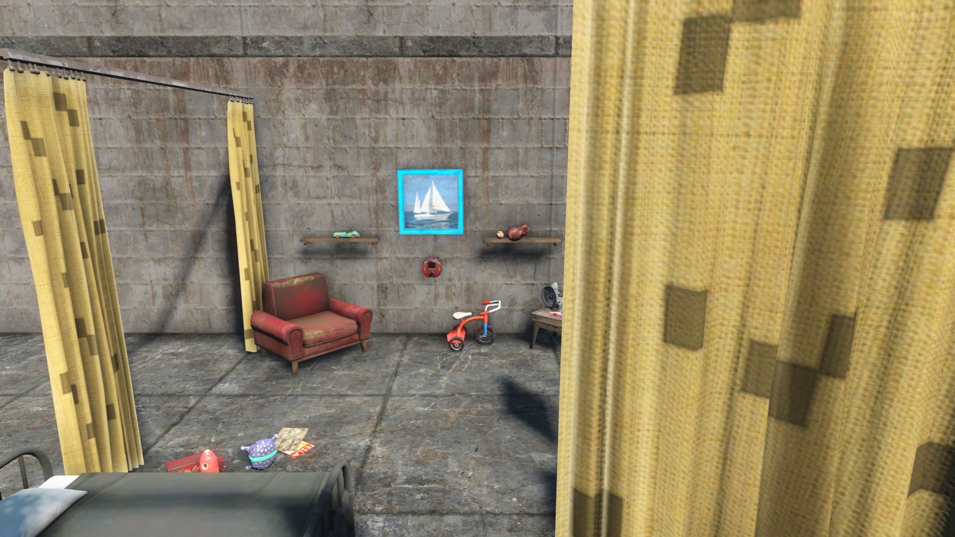 Using the same basic plan as the nursery, baby items have been removed and kid items added. Bed can be used by a child.
