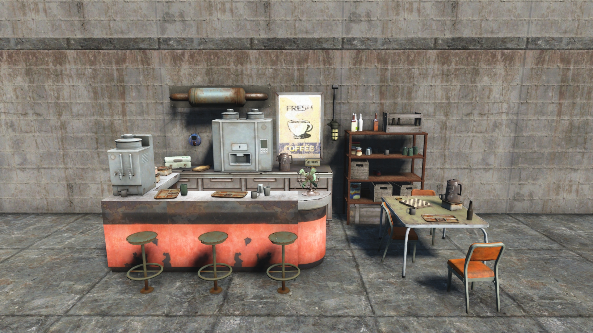 Outfits its occupant as a BOS field scribe. Make sure NPCs can access the bar at the front-left of the plot.