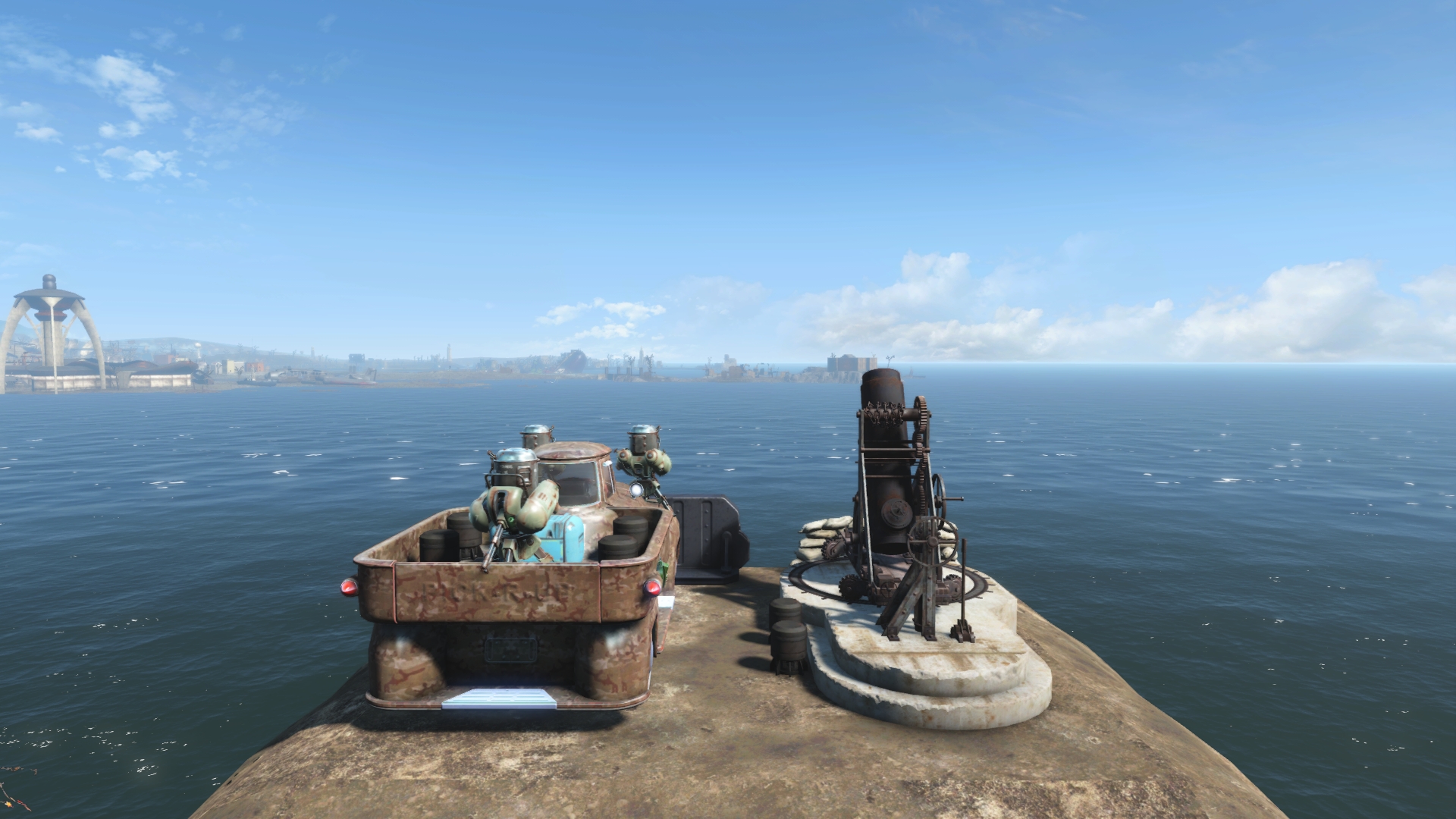 This security checkpoint packs a huge punch. One Artillery unit and one guard unit are stationed alongside an armored Prewar Attack Truck (turret equipped). Any raiders or Gunners would be wise to think twice before getting to close to this position.