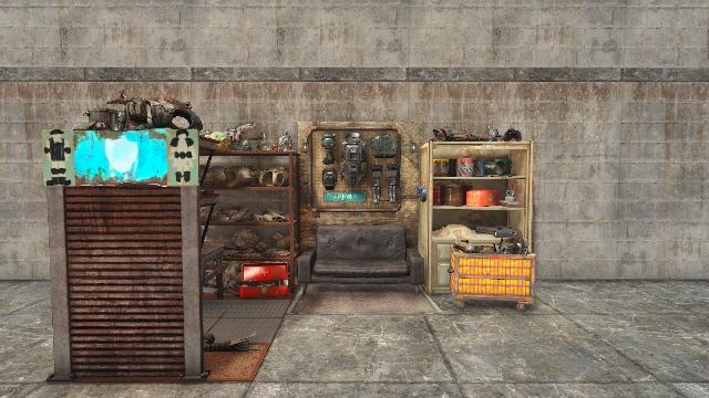 Closed Left side. Includes Armor Workbench. Alt versions: Residential, Armory, Battlefield Scavengers. From GavMan's Interiors Addon.