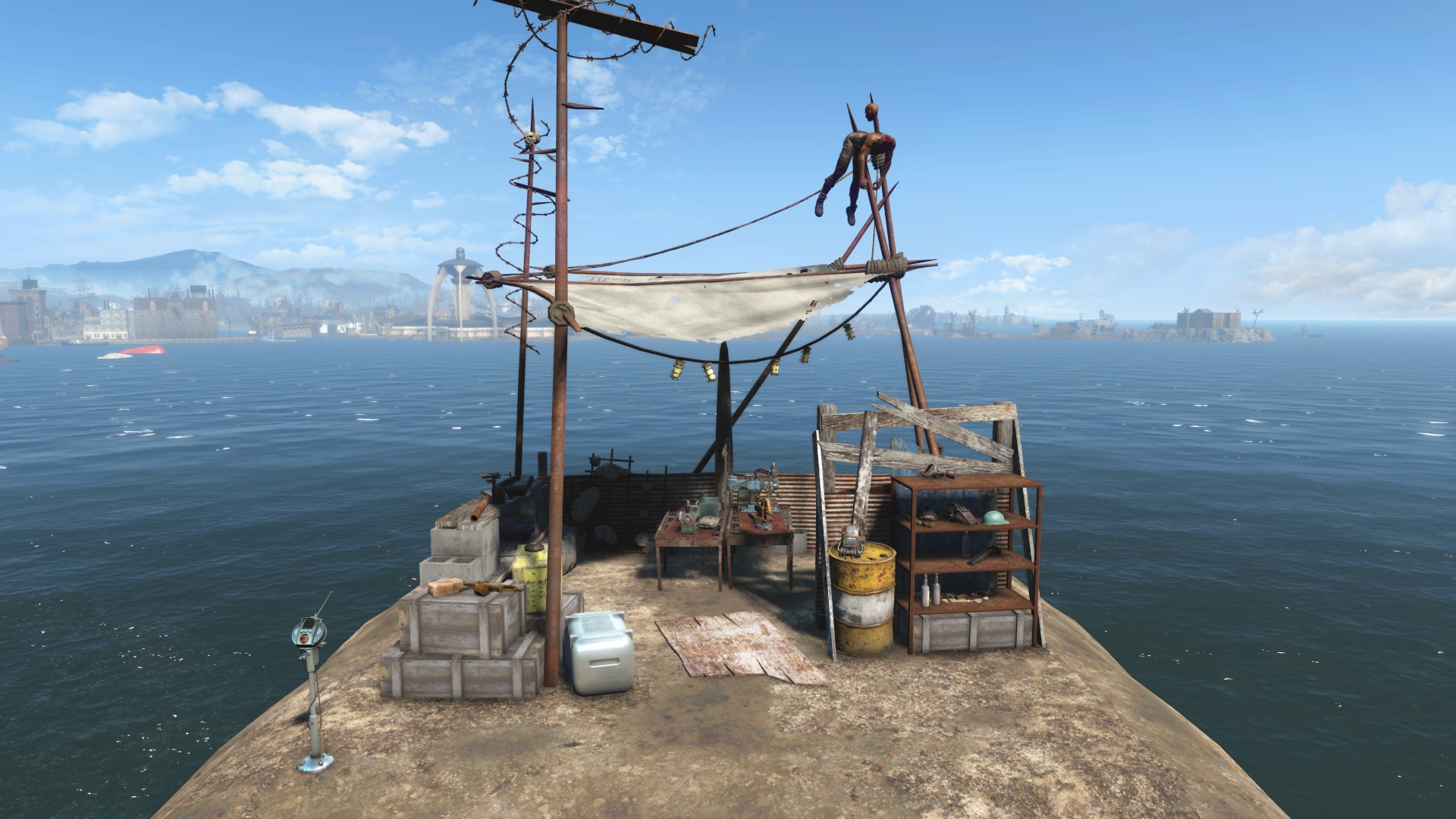 A vicious-looking tent with a busy foundry below.
