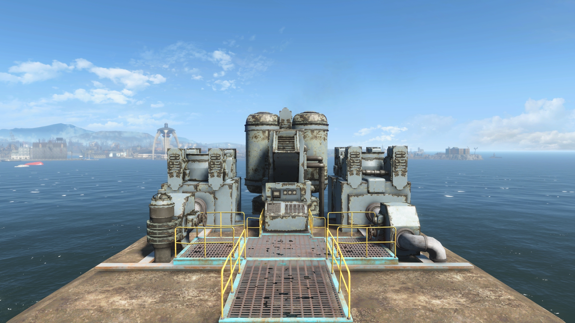 A massive water pump and purification apparatus. Can be placed on surface of water or land.