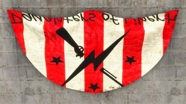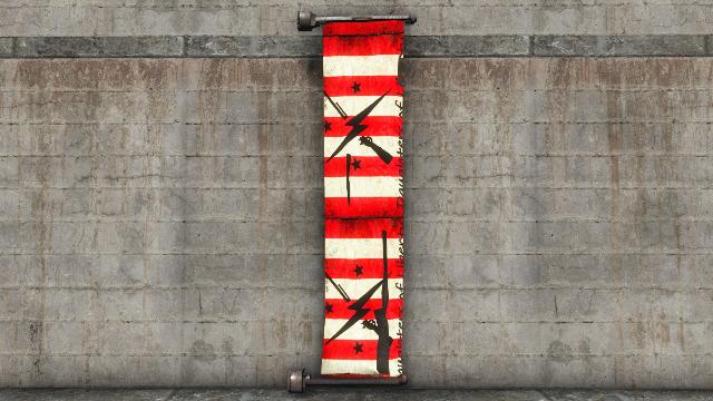 This addon pack includes a custom Minutemen flag that overrides the vanilla Minuteman flag texture. It has been ommited from this site's screenshots to prevent it from appearing in screenshots from other addon packs.